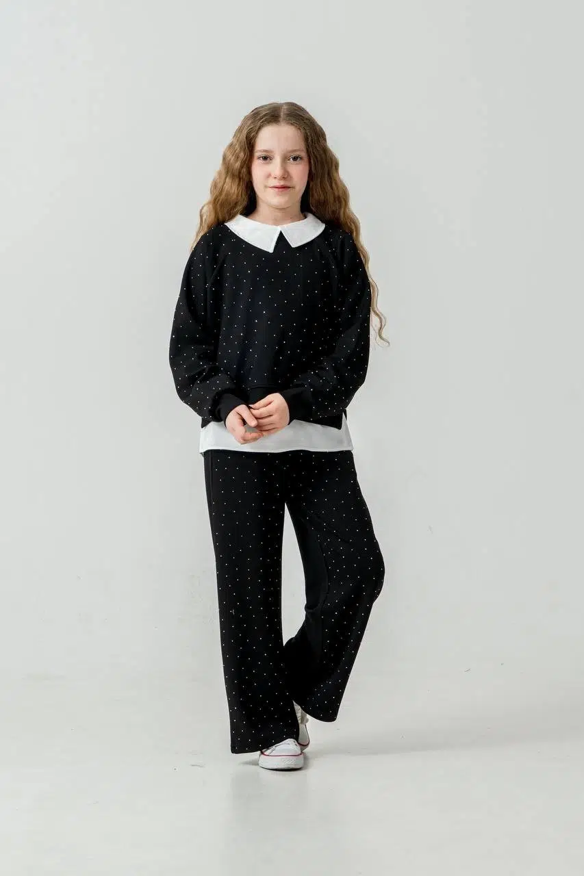 KIZ ÇOCUK BAYRAMLIK TAŞLI YAKALI 2Lİ TAKIM