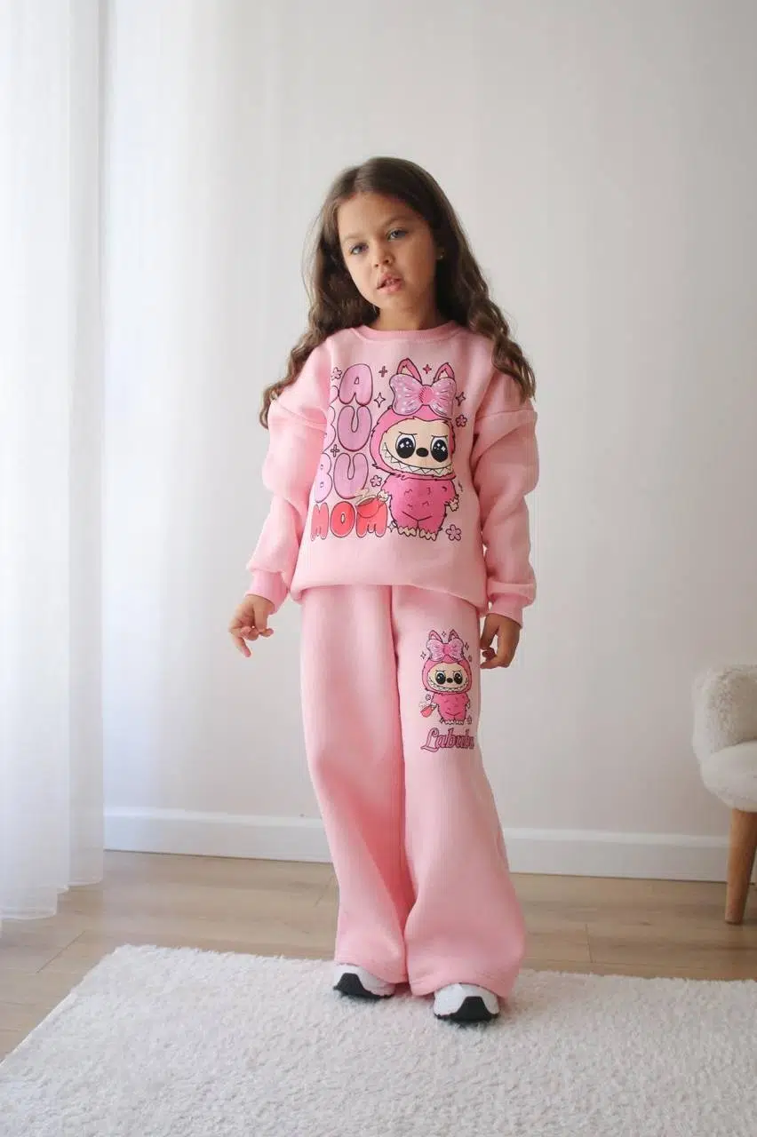 KIZ ÇOCUK MİNNİE MODELLİ 3 İPLİK ŞARDONLU EŞOFMAN TAKIMI