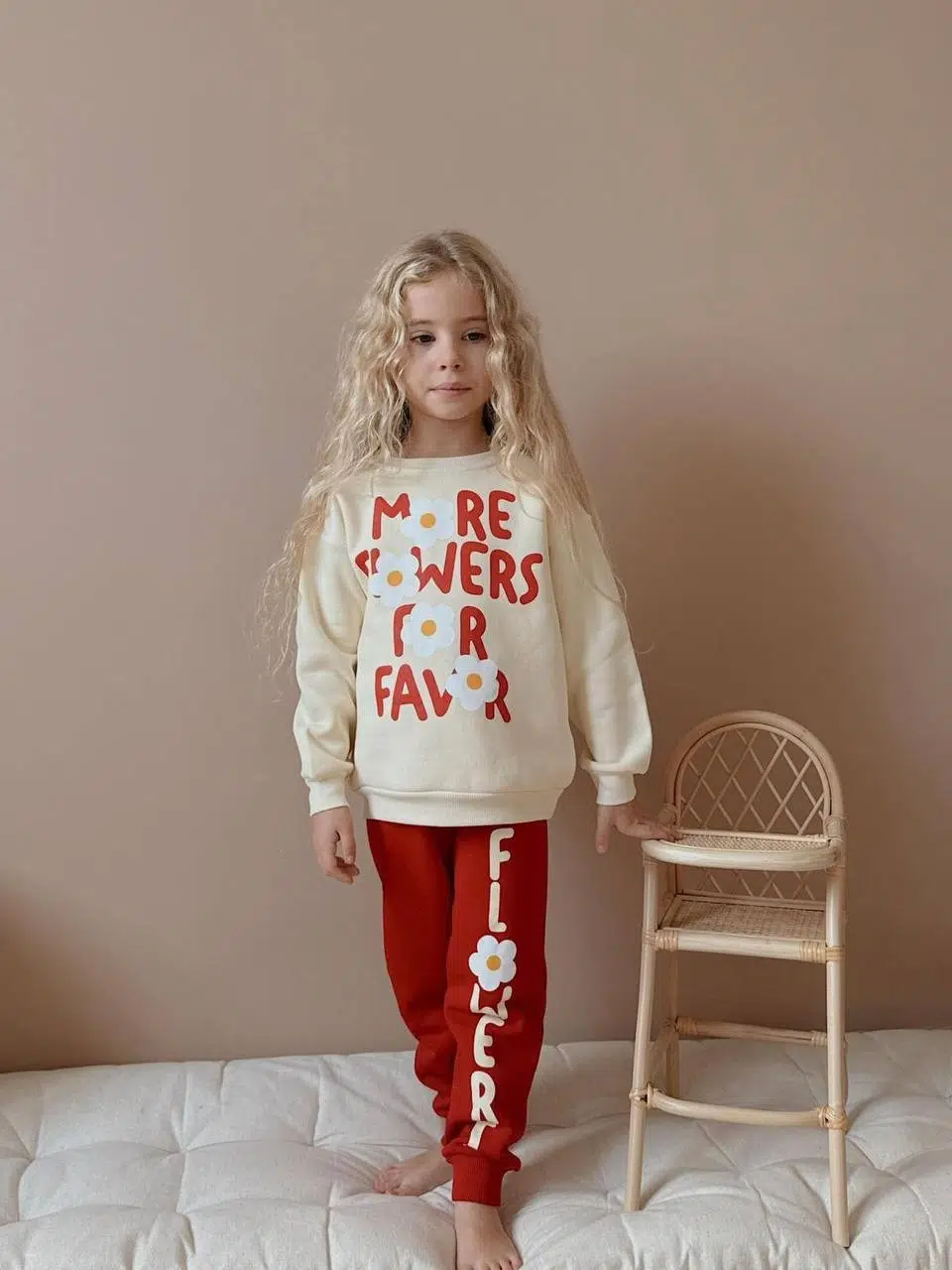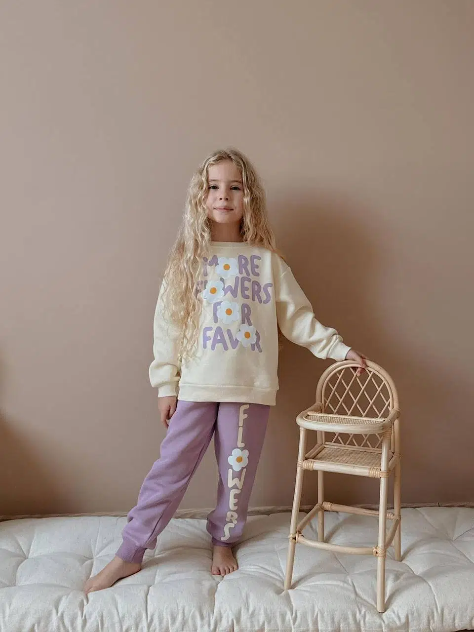 KIZ ÇOCUK PAPATYA DESENLİ 3 İPLİK ŞARDONLU TAKIM