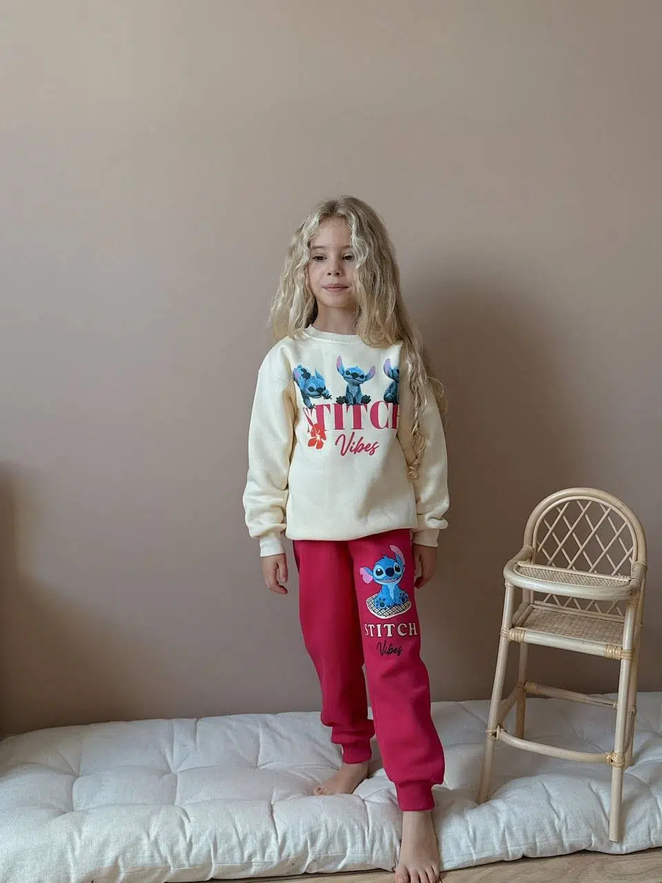 KIZ ÇOCUK STİTCH 3 İPLİK ŞARDONLU TAKIM