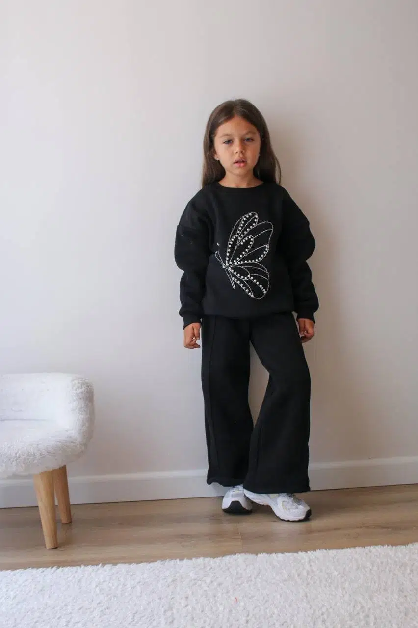EtiketlerKIZ ÇOCUK TAŞLI 3 İPLİK ŞARDONLU EŞOFMAN TAKIMI