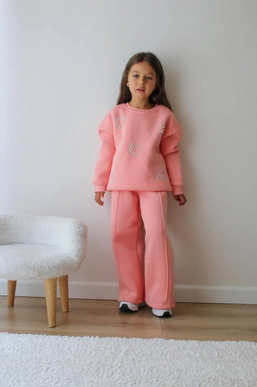 KIZ ÇOCUK TAŞLI 3 İPLİK ŞARDONLU EŞOFMAN TAKIMI